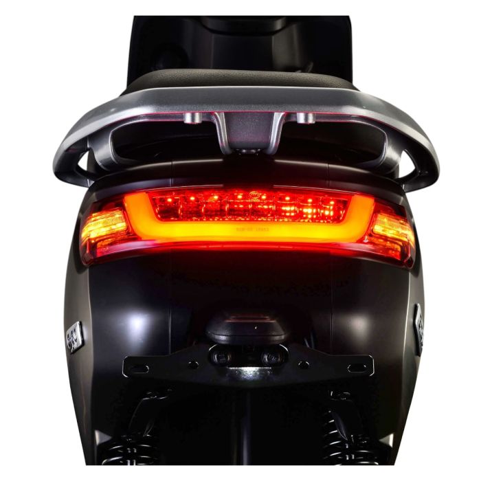 Het geavanceerde EBS remsysteem voorkomt slippen en zorgt voor een kortere remweg – extra veilig op nat wegdek of in onverwachte situaties. De titanium swingarm zorgt voor stabiliteit en stevigheid. Via het heldere LCD-display houd je je snelheid en accustatus altijd in de gaten, terwijl het geïntegreerde alarmsysteem je scooter beschermt tegen diefstal.