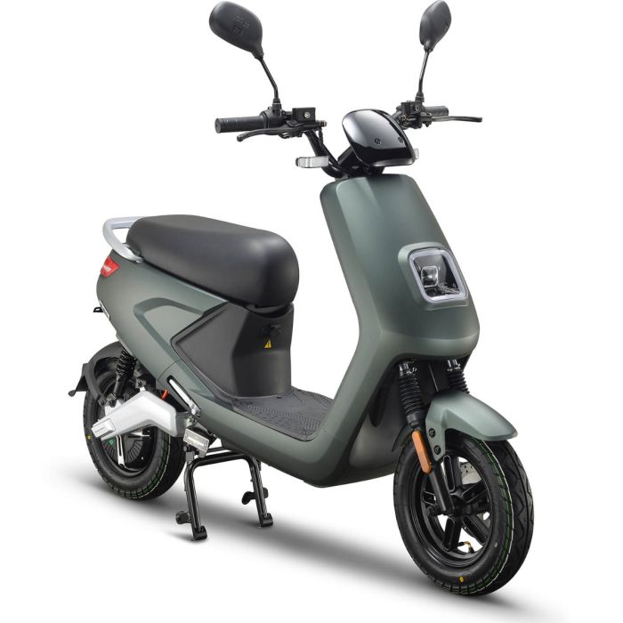 De IVA E-GO S4 is een stijlvolle, matgroene e-scooter met een krachtige 1440W Bosch motor. Dankzij de onderhoudsvrije, koolborstelloze technologie geniet je van stille, snelle acceleratie – zonder slijtage of uitlaatgassen. Deze scooter combineert topprestaties met lage gebruikskosten, perfect voor de milieubewuste rijder.