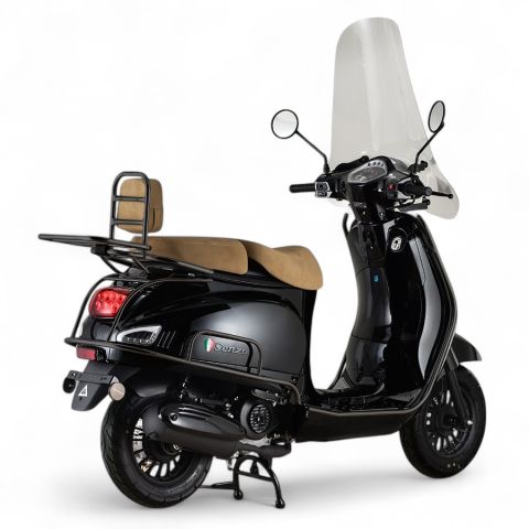 De Senzo Rivalux is een stijlvolle scooter met een klassiek retro design, maar dan voor een bijzonder scherpe prijs. Met zijn mooie afwerking straalt hij luxe en elegantie uit, terwijl hij toch zeer betaalbaar blijft. Dit model combineert een vintage uitstraling met moderne betrouwbaarheid, waardoor het een perfecte keuze is voor iedereen die oog heeft voor stijl én een beperkt budget. De Rivalux is verkrijgbaar in zowel snor- als bromuitvoering. 4-takt motor op euro 98.De Senzo Rivalux haalt zijn vermogen uit een sterke 4-takt motor met een cilinderinhoud van 50cc. De scooter is luchtgekoeld en rijdt op euro 98. Deze brandstof tankt u in een tank met een inhoud van 6,5 liter. Na een tankbeurt kunt u dus weer voor lange tijd vooruit.